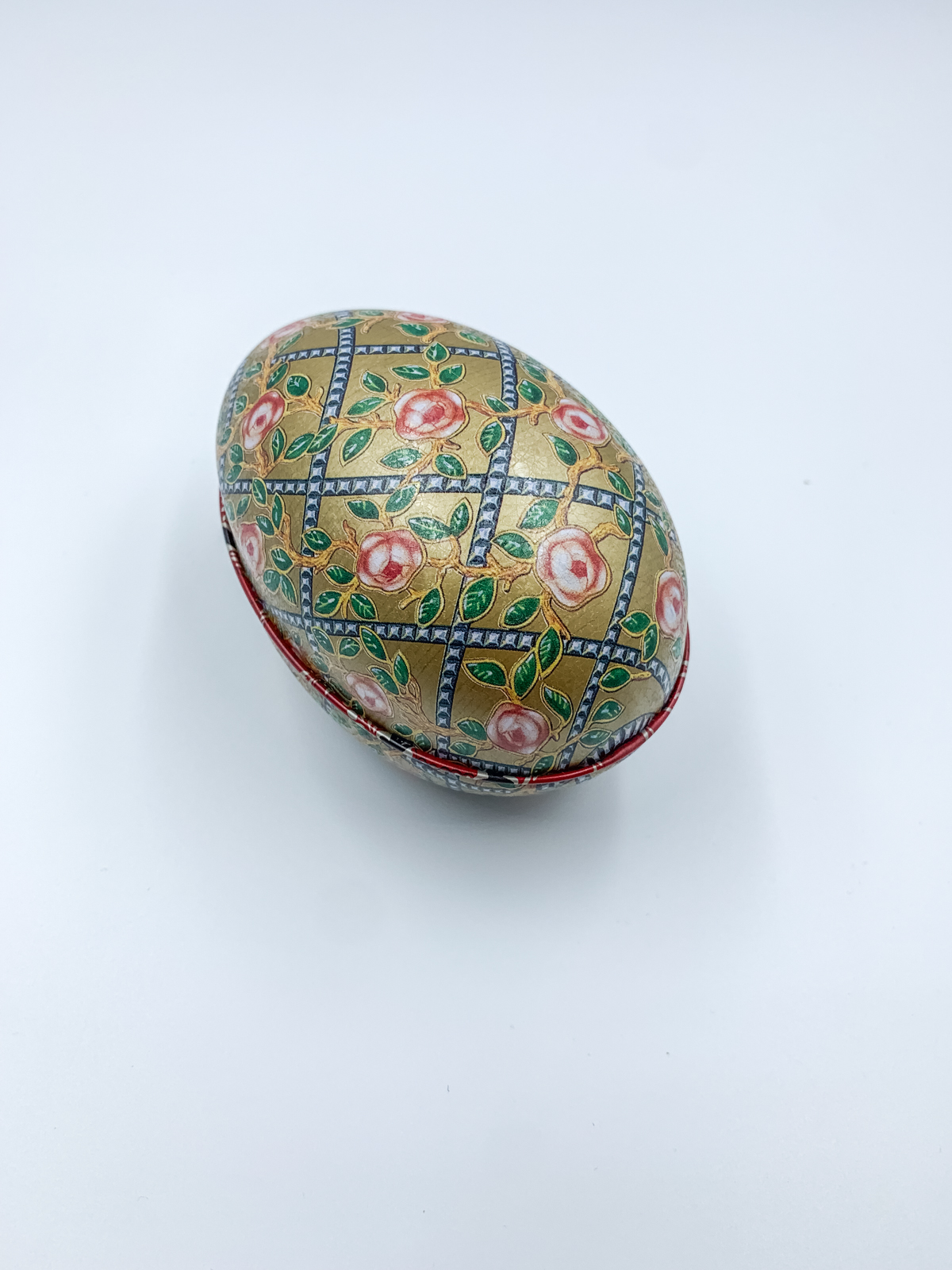 Μεταλλικό κουτί σε σχήμα αυγού σε σχέδια που αποτελούν αντίγραφα των αυθεντικών πορσελάνινων αυγών Faberge. Το εσωτερικό τους περιέχει εκλεκτά σοκολατάκια.